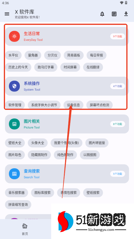 3、首页页面推荐每日早报、资源嗅探等内容。