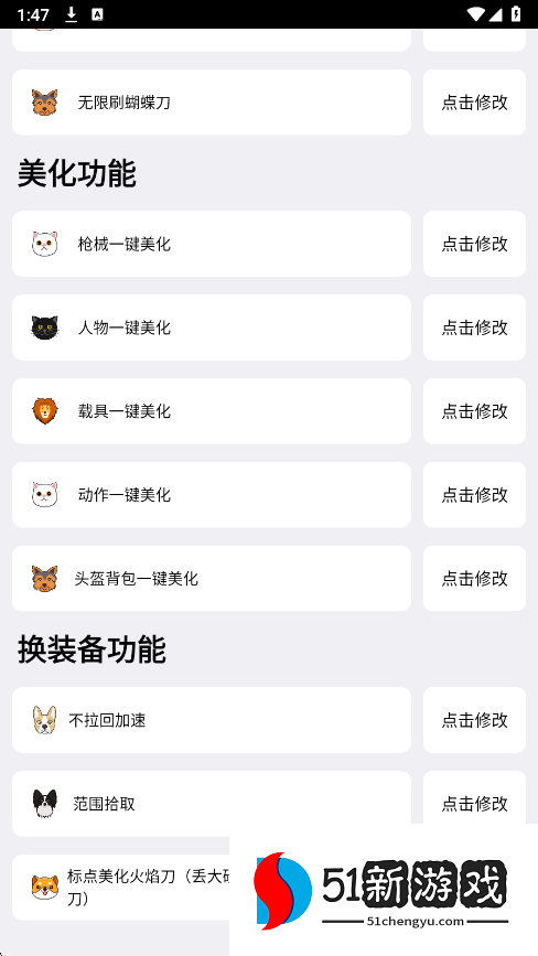 3、在第2个功能板块中,拥有着8个功能,其中就有专属修改、高优化修改、低端机、中端机、高端机等选项;