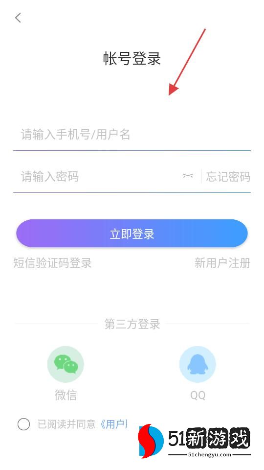 3、帐号登录页面,可输入手机号、用户名和密码登录,有忘记密码、短信验证码登录、新用户注册选项,也可通过微信、QQ第三方登录。