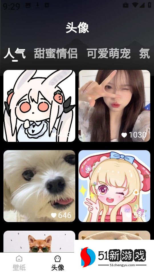 1、进入焕新主题桌面壁纸 app 后,点击下方 “头像” 板块,进入头像资源库。