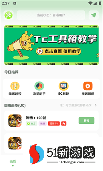 TC工具箱是一款免费的移动助手,专为游戏玩家设计,可及时了解信息。TC工具箱app提供了一个更简单的功能来改善游戏图形,消除了对图像清晰度的担忧,可以在PUBG等许多流行游戏中稳定运行,该平台提供多种不同的图形调整解决方案。您可以根据自己的实际情况进行操作,非常方便。此工具是免费共享的,可以根据您的实际情况快速更改游戏帧率,使画面更清晰,细节更清晰!