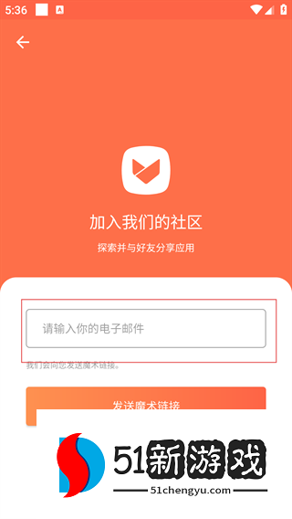 4、输入电子邮件后点击“发送魔术链接”,通过邮件链接完成注册,Aptoide采用安全登录机制,不会保存用户密码。