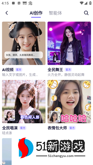2、进入创作界面后,会看到平台提供的各类AI创作模板,涵盖剧情、生活、趣味等多个场景,部分模板还关联热门IP形象,可直接选用。
