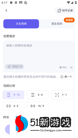 3、 挑选心仪的模板后,可根据需求选择创作模式——支持“文生视频”和“图生视频”两种核心方式。若选“文生视频”,需清晰描述画面内容(可补充风格、场景等细节);若选“图生视频”,上传参考图片后补充说明需求,完成描述后点击“立即生成”即可启动创作。