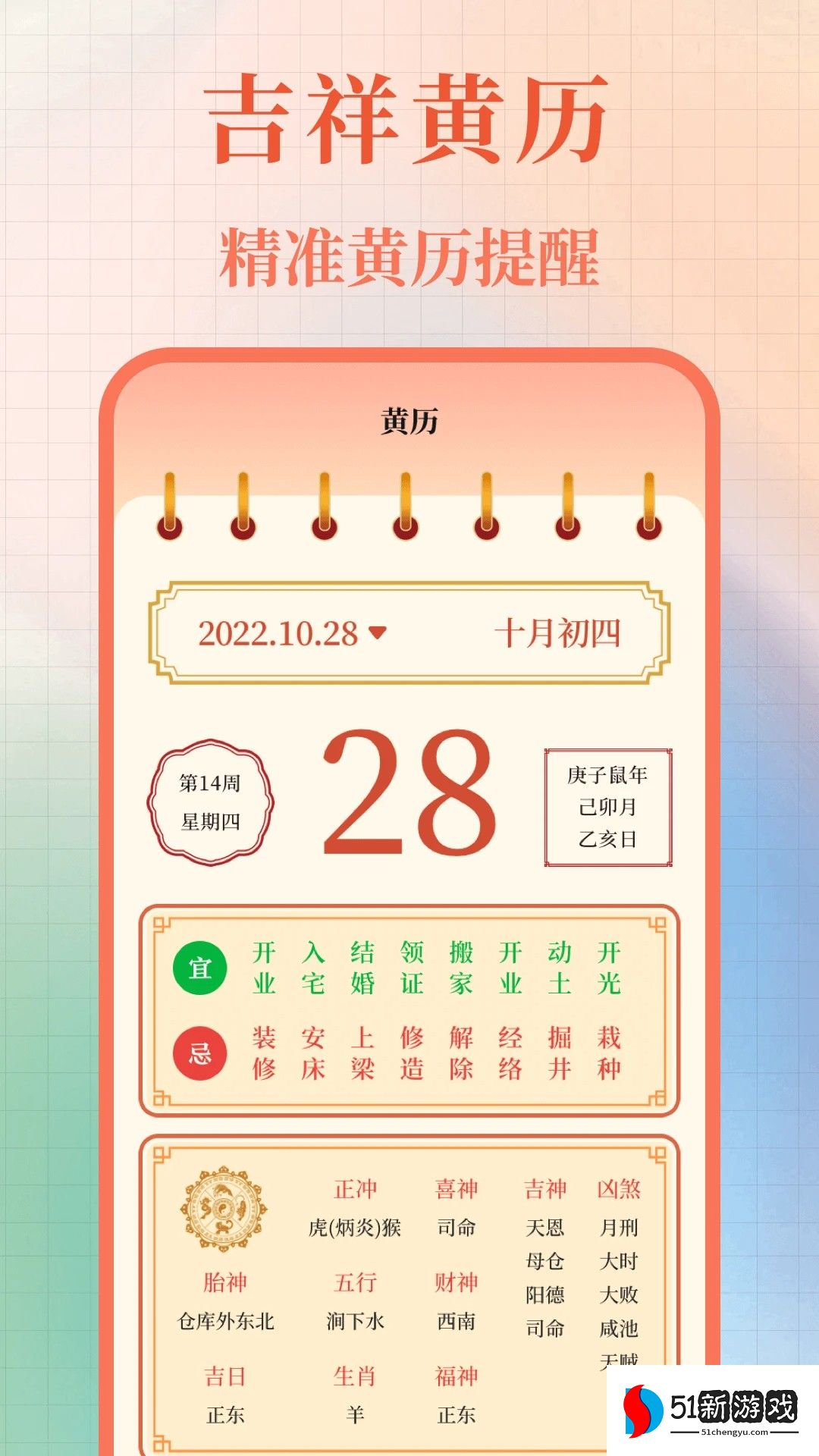 365黄历万年历是一款简单易用的日历查询软件,拥有丰富多样的日历主题皮肤,允许用户自由选择使用,轻松享受便携的日历查询服务,还提供公历、阴历、万年历等实用功能,用户可以创建个性化的公共日历,轻松提升办公效率,能完全满足所有使用需求,还具有个性化的界面设计,支持阴历和万年历查询,随时随地在线同步更新日程提醒,给用户带来全面的使用过程,也具有基本的日历功能,可以轻松了解当前日期的禁忌事项。
