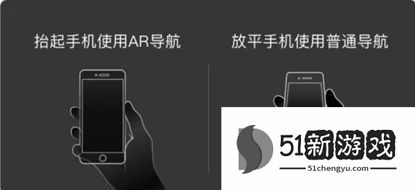 4、进入AR导航页面后,抬起手机使用AR导航模式,压平手机使用正常步行导航模式。为了您的安全,建议在十字路口和其他车辆较多的地方放下手机,注意行走安全。