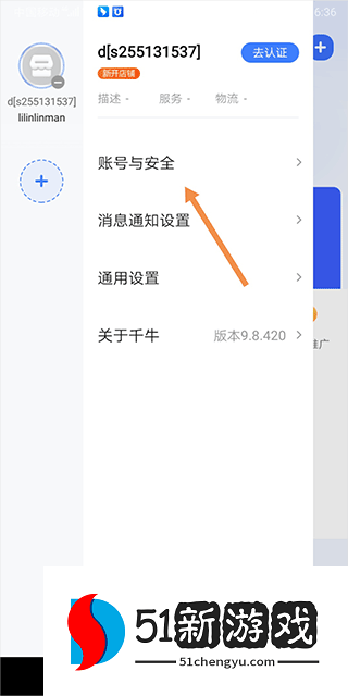 2、然后单击“帐户和安全”并单击它。