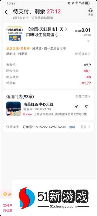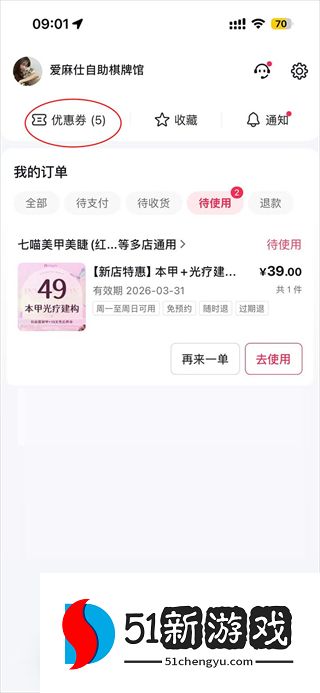 2、在订单界面,点击“优惠券”按钮。