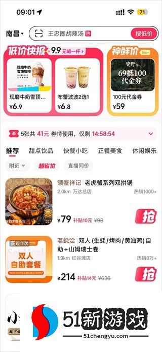 3、不靠短视频种草,直接展示附近可用优惠,如火锅五折、影院买一送一。