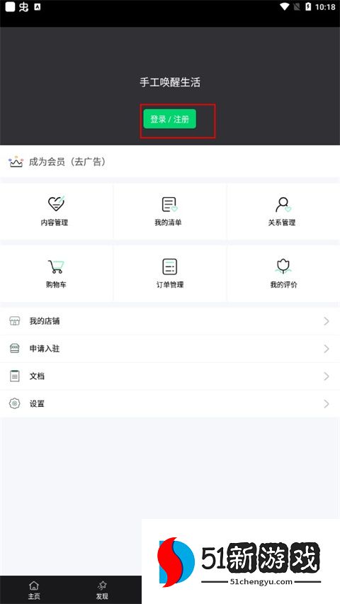 1、点击个人,然后点击登录注册打开,点击页面下方的发现。