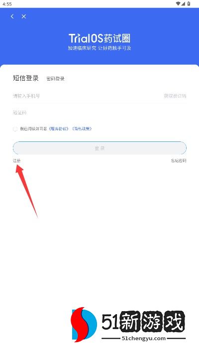 3、在登录页面中,选择注册功能选项,系统将自动切换到填写新用户信息的界面。