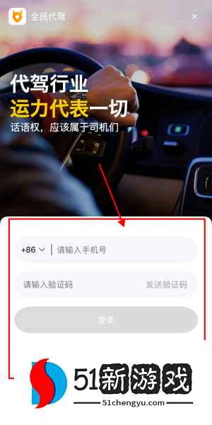 1、打开全民代驾app,输入手机号和验证码进行登录。