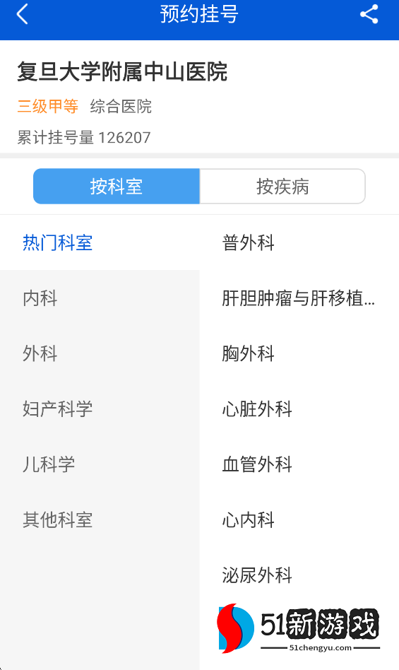 3、进入医院后,选择您需要查看的科室和疾病。