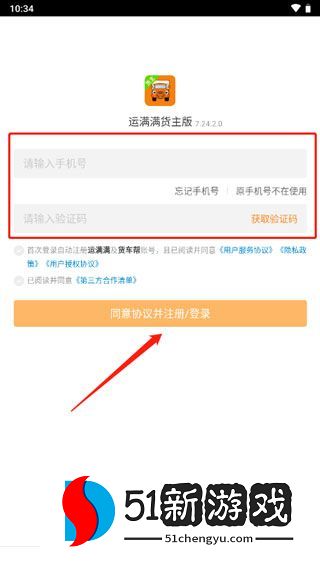 1、下载并安装运满满货主应用程序,打开账户登录软件,输入您的电话号码和短信验证码,点击“同意协议并注册/登录”,新用户将通过点击“首次登录”自动注册账户。