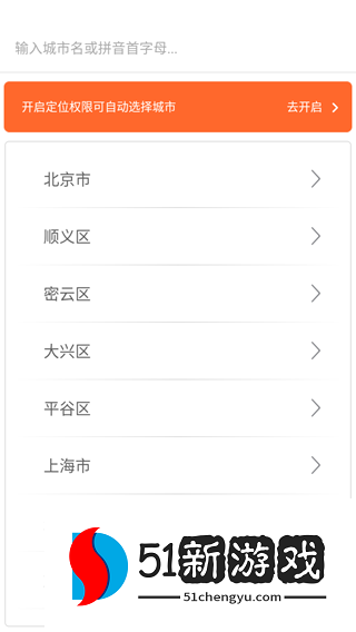 2、选择城市或使用位置功能自动选择。