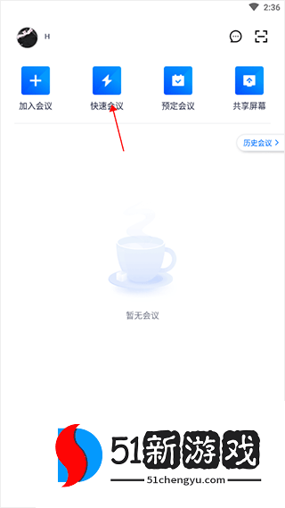 1、在腾讯会议中,点击主界面上的“快速会议”选项,进入新界面。