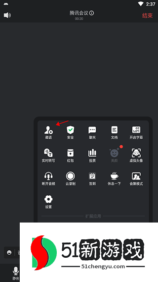 5、在展开的下拉菜单中,找到“邀请”选项并单击它以展开邀请界面。