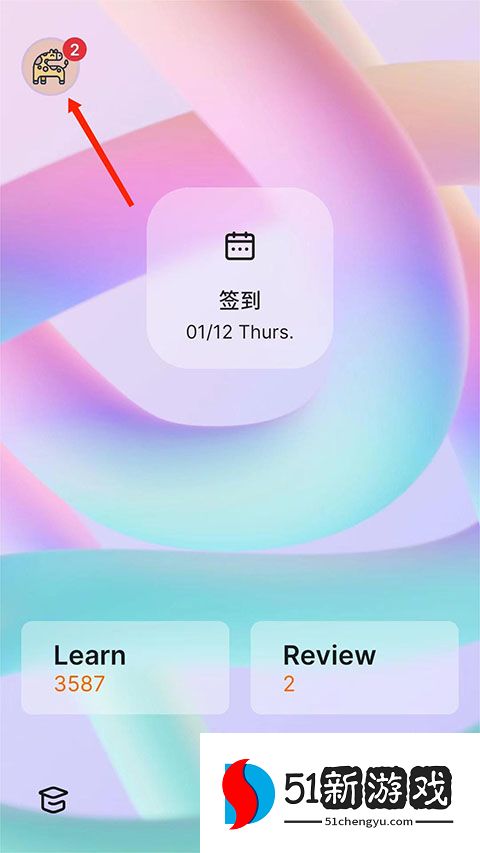 1、打开不背单词应用程序的官方版本,选择右上角的“头像”标志。