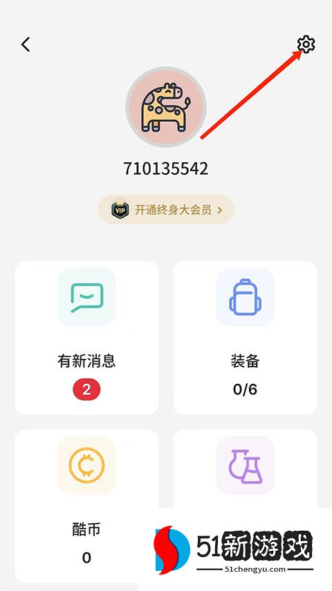 2、进入个人中心界面,选择右上角的“齿轮”图标。