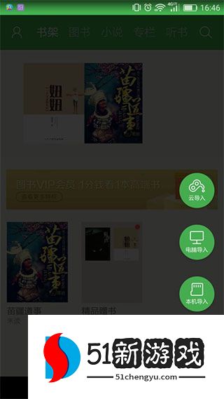 3、登录主页后,您可以看到以前读过的小说。在右侧,有一个+,您可以从云、计算机或本地计算机导入它们。