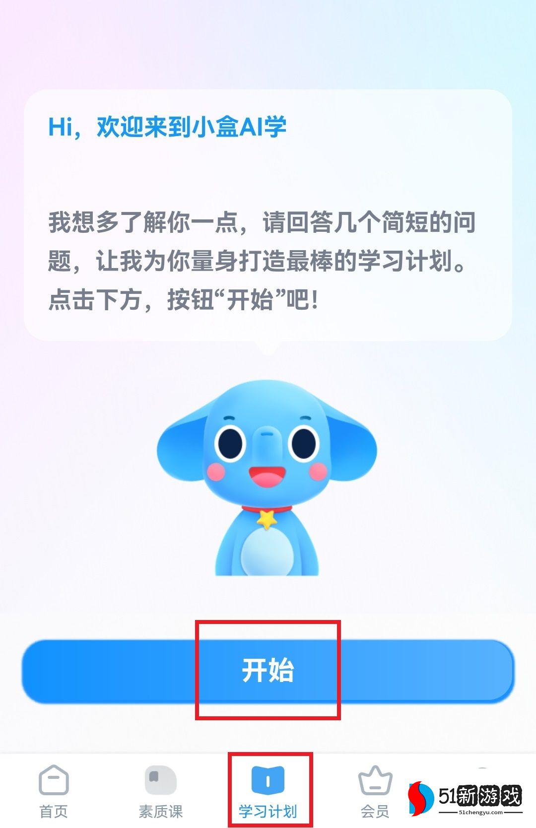 1、点击下面中间的“学习计划”。首先,你需要回答几个简短的问题,以帮助人工智能更好地理解你。准备就绪后,单击“开始”。