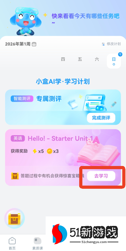 4、返回后,您将被重定向到学习计划页面,在那里您可以看到需要学习的目标。点击“去学习”开始今天的学习计划!