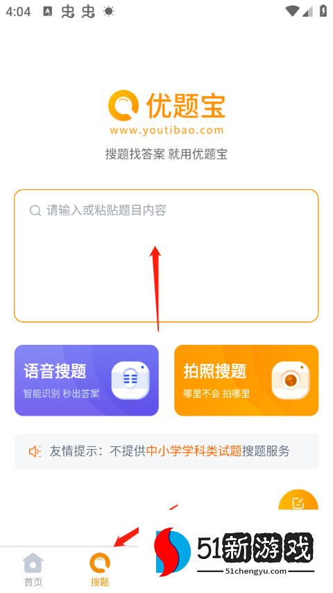 1、首先,打开应用程序并进入搜索界面。点击输入框输入问题,您还可以使用语音搜索或照片搜索。