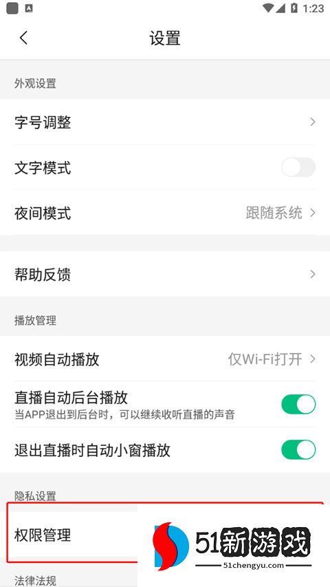 3、在设置页面上找到“权限管理”。