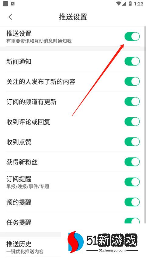 5、单击“推送”设置右侧的绿色按钮。
