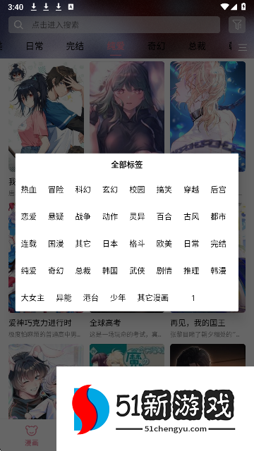3、软件内有海量漫画类型可以随意观看。