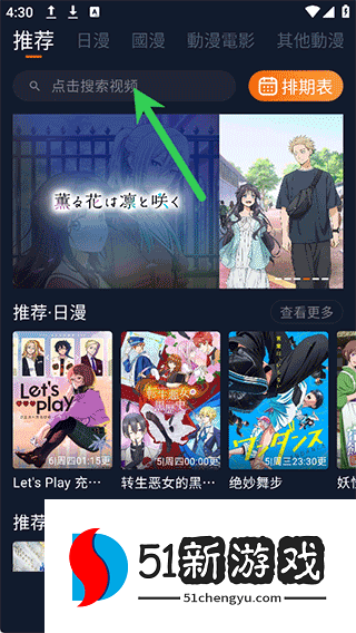 1、打开app后可以点击顶部的搜索框进行动漫的搜索。