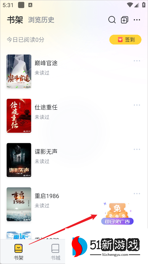 1、打开塔读小说应用程序,打开后,您将看到“每日无广告”标志。点击进入。