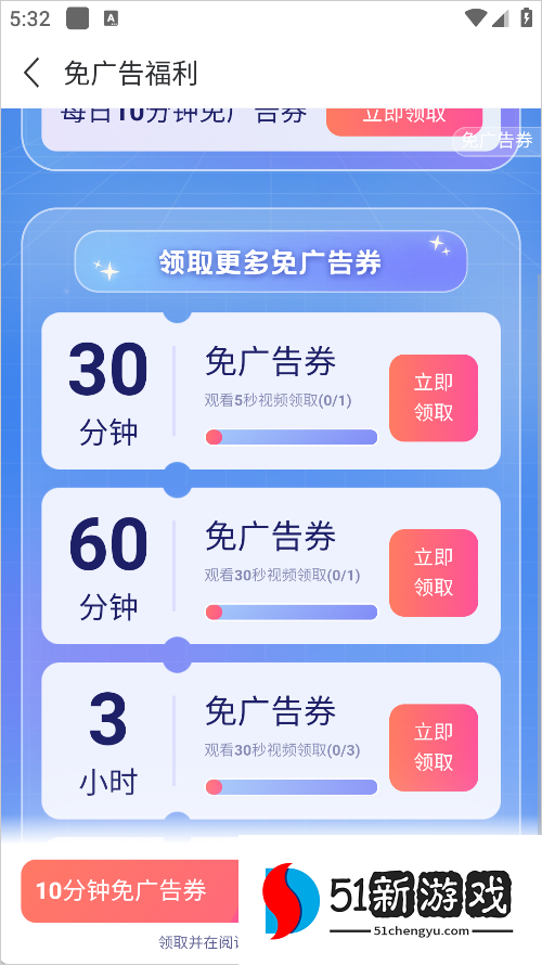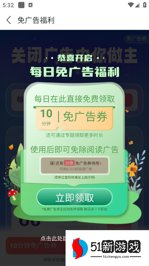 2、进入后,您可以看到无广告福利。点击“立即索赔”以生效。
