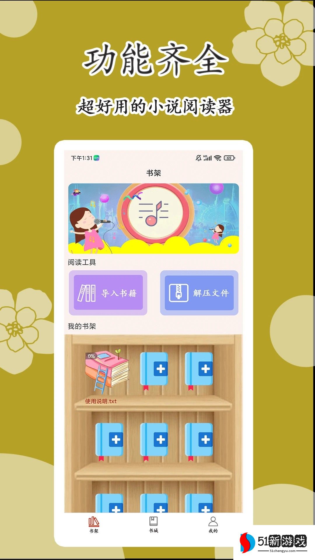 3、书架管理:提供书架和列表两种显示方式,允许用户自由管理自己的书籍。