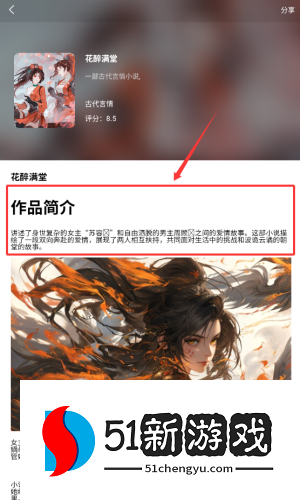 4、在细节页,阅读作品介绍,了解小说的内容。