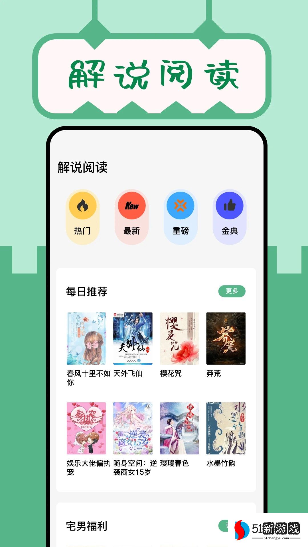 3、丰富的在线图书馆资源:内置数百万在线图书馆,提供各种排名、最受欢迎的图书推荐和各种阅读类别。