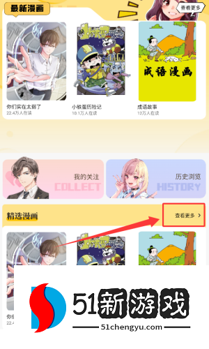 2、在“选定漫画”部分,单击“查看更多”按钮。