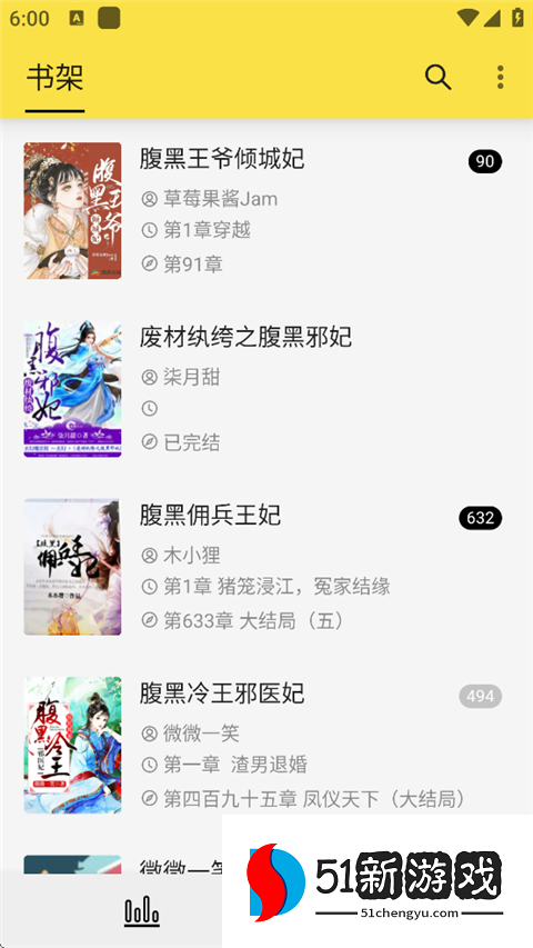1、在本网站上下载并打开软件后,用户将被引导到书架界面。他们看过并添加到书架上的小说将放在这里,便于快速阅读。用户还可以点击右上角的三个点进行搜索和设置。