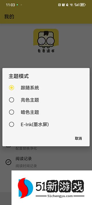 6、用户可以点击个人中心的主题模式,设置四个主题:跟随系统、浅色、深色和墨水瓶。