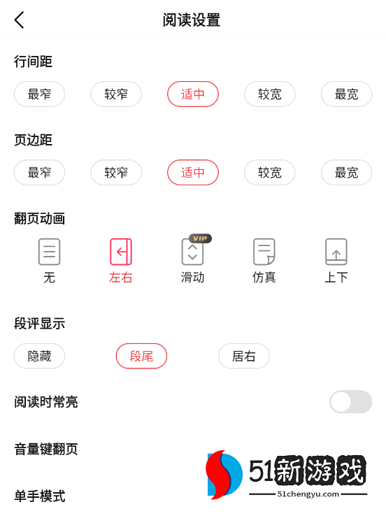4、阅读小说时,玩家可以自由设置阅读界面,更改行距、页边距、翻页动画,并平等选择片段。
