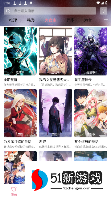 2、点击左上角放大镜也可以自定义搜索漫画。