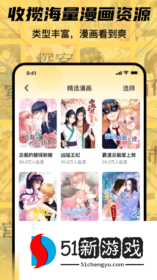 在51漫画里,你可以轻松浏览和阅读全球各大漫画网站的大量漫画作品。这里既有经典的长篇漫画,也有流行的短篇连载。让用户第一时间阅读到最新的内容。