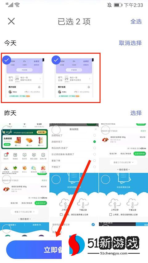 2、选择右下角的“照片”选项,检查所需的照片,然后单击“立即备份”。