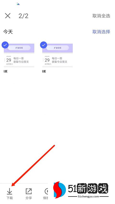 5、选择已备份在旧手机上的照片,然后选择左下角的“下载”。