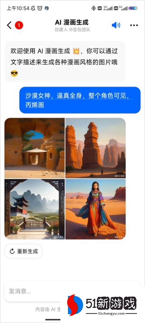 3、然后选择ai漫画生成,进入之后输入自己需要生成条件,比如:沙漠女神、古风美女、盛开的桃花背景、全身照片等等。